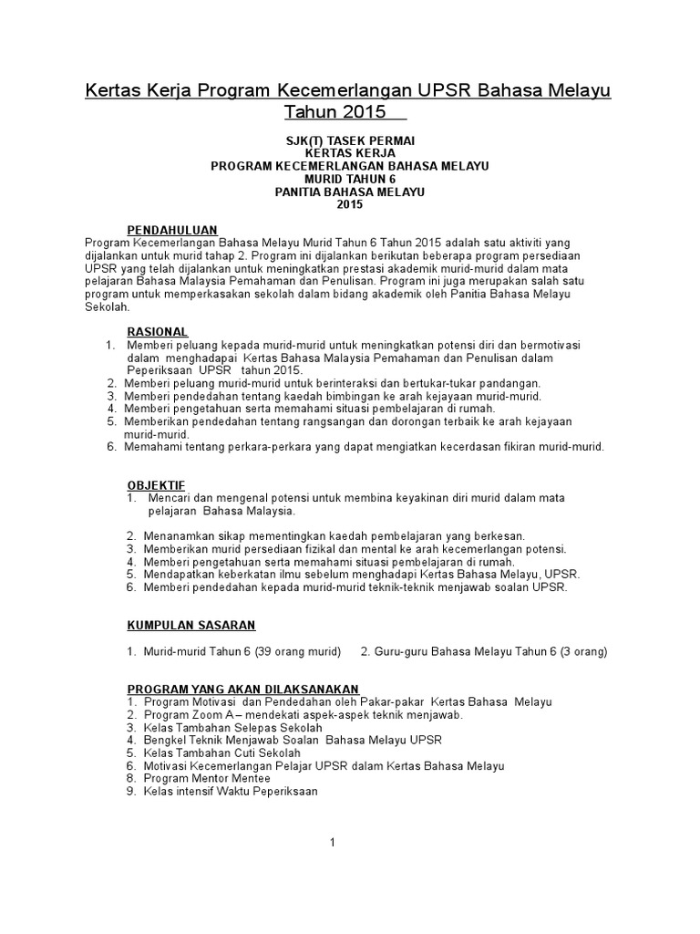 Kertas Kerja Kem Kecemerlangan Upsr 2014 from imgv2-1-f.scribdassets.com Kertas kerja hari anugerah senarai nama ajk/ pengarah program catatan imam: Kertas kerja program kecemerlangan murid. Penceramahprofesor muhd kamil bin ibrahim, unikl. Tenga kerjasenaraikan keperluan tenaga kerja untuk bahagian operasi. Kertas cadangan seminar motivasi pmr/spm. Progra program m motiva motivasi si tahun tahun enam enam merup merupaka akan n salah salah satu satu progra program m yang yang telah telah dirang dirangka ka dan dijadikan sebagai program tahunan sk. Download contoh kertas kerja anda sekarang. 9:22 am ainul farina 16 comments.