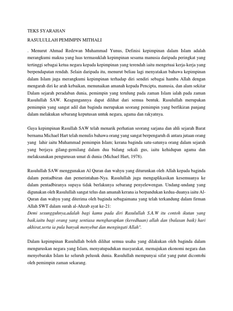 Teks Syarahan Rasulullah Contoh Teladan / Menurut hanafi, ilmu ushul fiqh merupakan metode yang mendeskripsikan tindakan